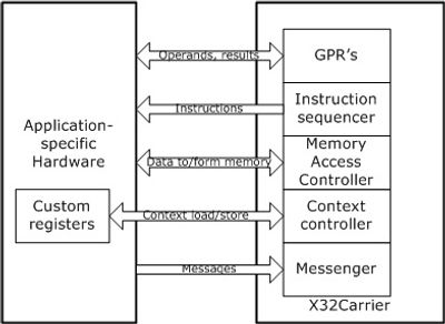 X32Carrier is a soft processor platform that can be extended with application-specific equipment organically fitting it into the basic architecture and expanding the basic set of machine instructions to obtain a target microprocessor system that is maximally adapted for solution of a specific practical task. The X32Carrier platform is a complex consisting of a set of source verilog files, memory initialization files and software designed for developing, debugging programs and monitoring the state of processor system.